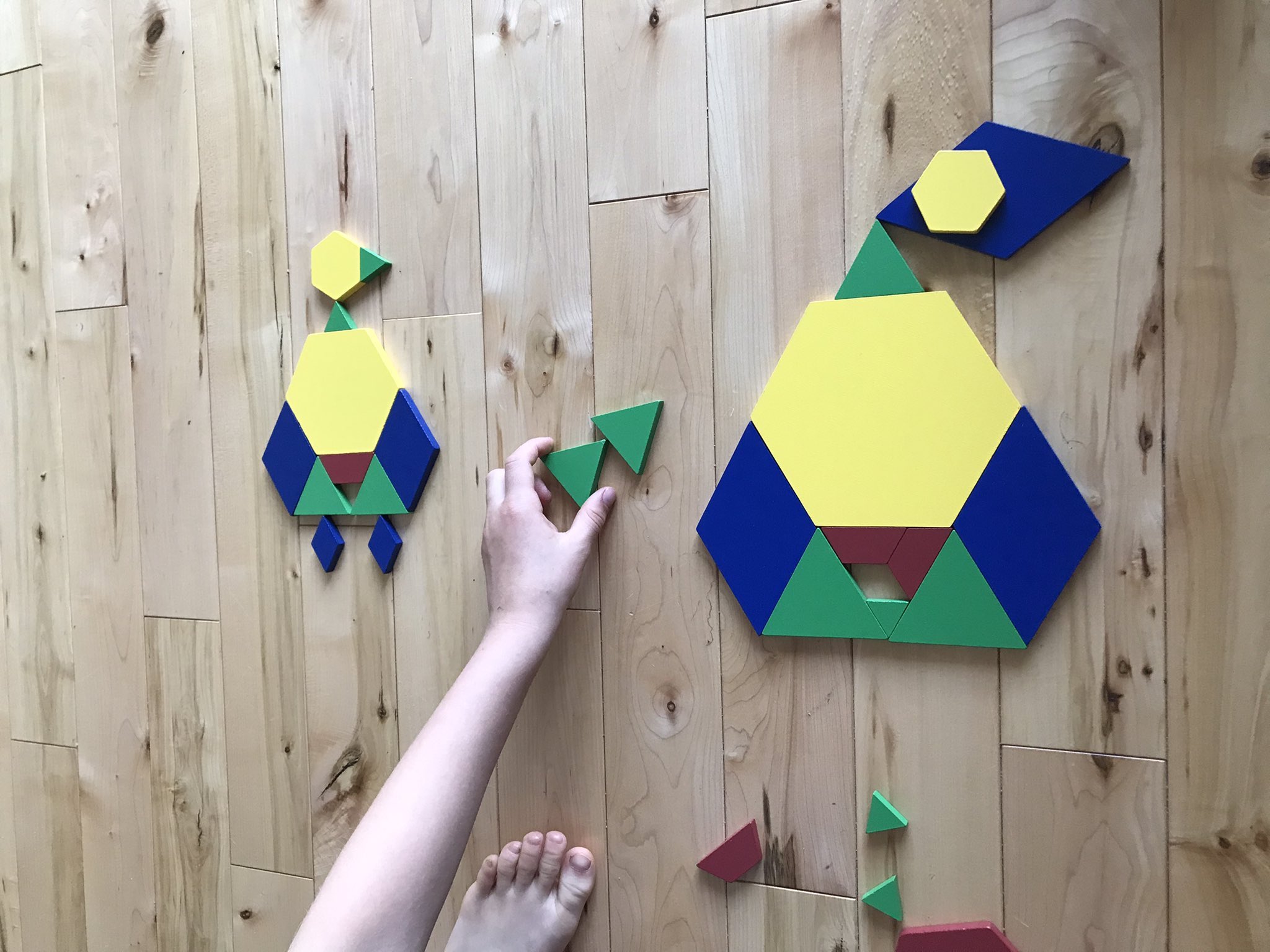 Free play with Upscale Pattern Blocks is the best way to get started. Just start building and exploring!