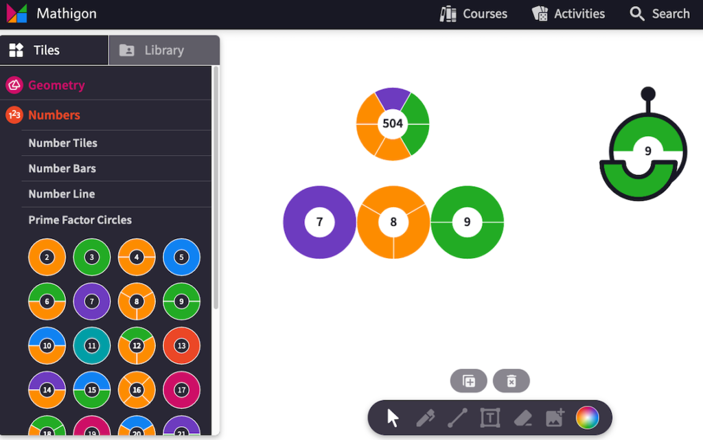 One advantage I want to emphasize about online manipulatives is that they more often can keep a record of all the things you tried, rather than losing all that and having only the current state of things. There’s so much value in being able to look back through all your experiments to see what you rejected or what didn’t work the way you wanted.