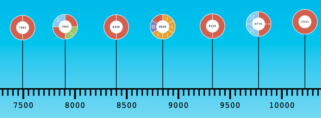 The best of these experiences, in my opinion, should actually encourage students to turn away from the screen at some point. For example, I noticed that if I put pins down arbitrarily at some high enough stretch of the number line, there always seems to be a red sector (i.e., a prime factor greater than 10) in that number. Can you find one that doesn’t have that red section? How many can you find between, say, 9000 and 10,000?