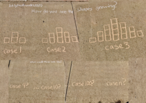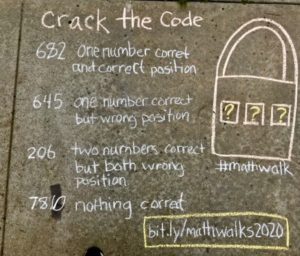 Consider Traci Jackson (@traciteacher on Twitter) and her #mathwalk photos of chalk sidewalk drawings of math conundrums. She’s posing math problems for passersby to pull them in. (Echoes of nerdsniping.)