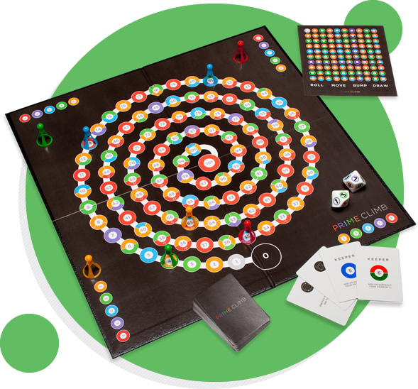 Prime Climb is a perfect game for ages 10+ (or 8+ with adult guidance) to explore mathematical structure in multiplication, division, and prime numbers in a fast-paced, dynamic game of strategy and luck. Great for home or school! Learn more about the game that has received rave reviews, a raft of awards, and thousands of fans.