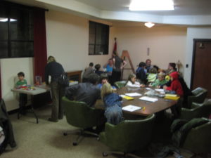 The best thing I had going for me was Katherine, Math for Love’s newest addition, and an unbelievable asset (she’ll be properly introduced on the website soon). It was a packed house tonight, with more than twenty kids, many quite young, plus their parents. I might have been a bit overwhelmed without her. But with the two of us there, everything went smoothly, and seeing her in action was a pleasure. She relates phenomenally well to kids, drawing out shy children, offering just the right kind of challenge to confident ones. A parent emailed me afterward that her incredibly shy daughter, who hardly ever speaks to adults “could not stop talking about all she had done with Katherine.”