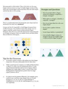 We’ve used versions of this lesson for over 12 years, but this current write-up, from our new Supplementary Curriculum, is our favorite version by far, not least because it extends the conjecture to 21st Century Pattern Blocks.
