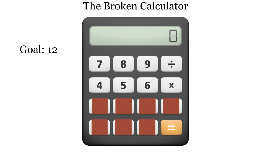 Broken Calculators are one of the most versatile and delightful openers I know. The image itself communicates the heart of the puzzle, while leaving students open to all manner of different and personal approaches to reaching the goal.