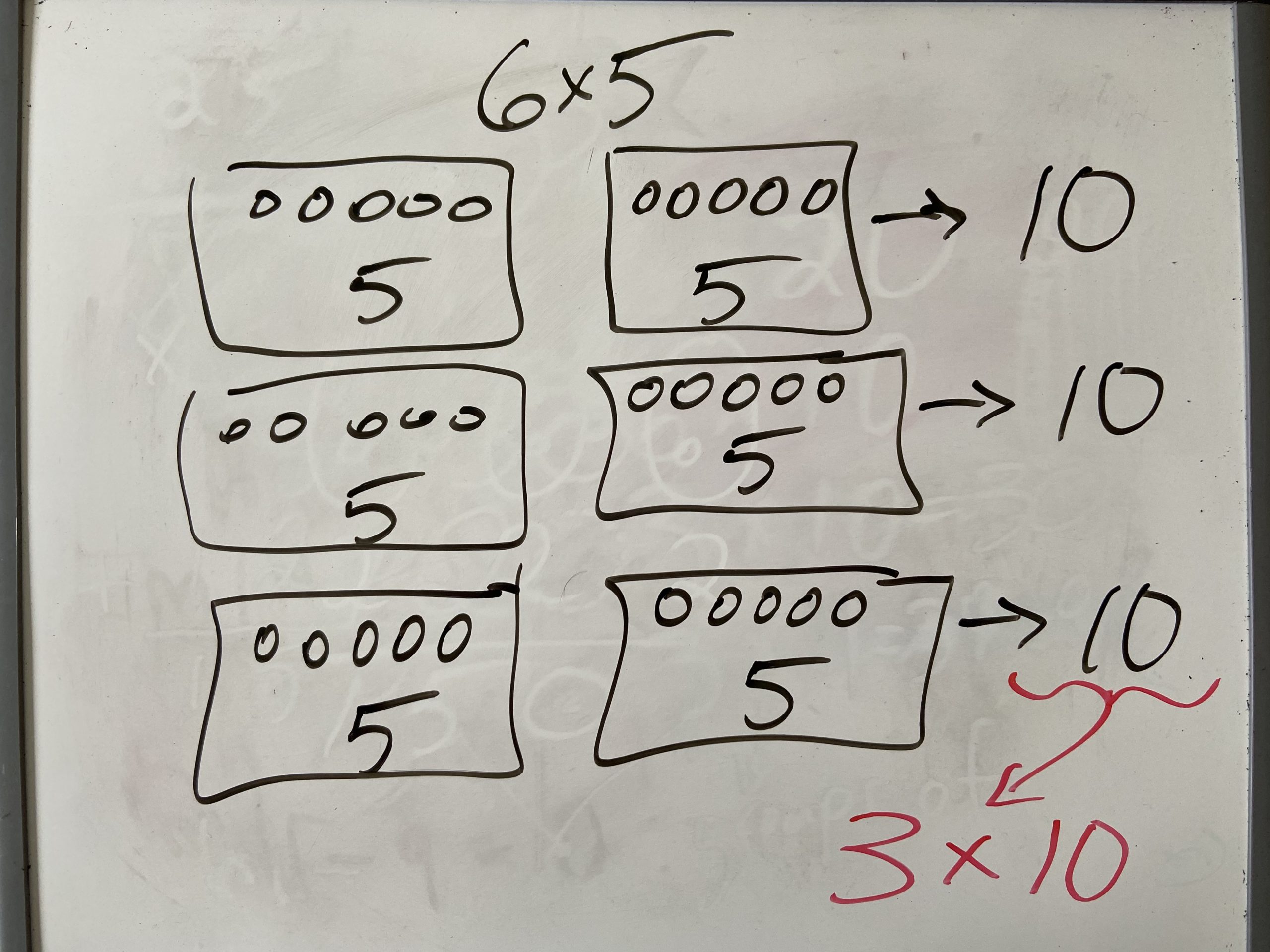 Let’s return to the 6 x 25 example again. Maybe you already used the algorithm to find the answer (150). But because it didn’t make sense, you went down the ladder of easier problems I discussed above. As you went back up, you noticed from your pictures that 6 groups of 5 was really the same as 3 groups of 10.
