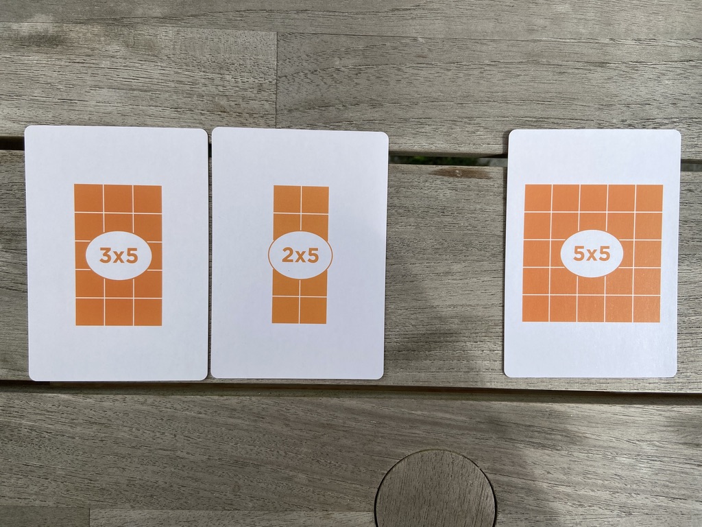 Now if you’re looking for a puzzle to see how well you (or a kid, perhaps) grasps all this, let me pose one for you. Find four cards (representing arrays) that add up to 5 x 5, but that are not the four cards from this picture.
